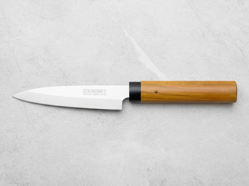 Coltello gianpponese ideale per tagliare le verdure, ma in realtà ottimo per qualsiasi utilizzo in cucina. Con fodero in legno molto elegante.