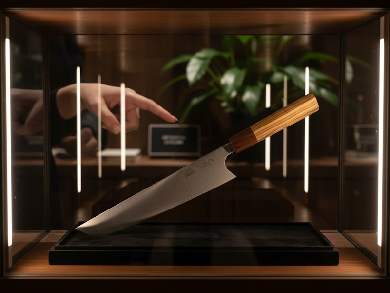Coltello Kitsune con lama 23 cm in acciaio inossidabile e manico in legno di ulivo. Pezzo unico di manifattura artigianale