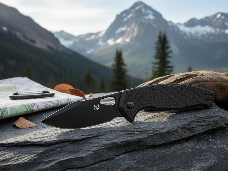 Coltello fox con lama di 7,5 cm in niolox e topshield nero. manico ini frn nero, disegnato da Vox, La sicura backlock. Clip in Aisi 420 idroglider.