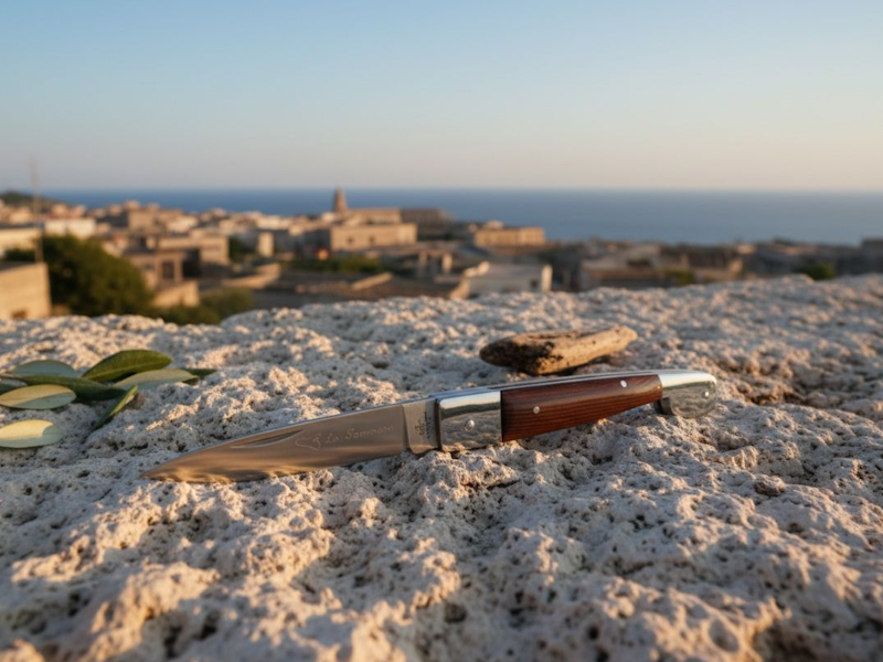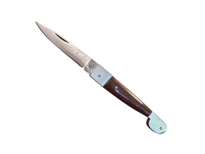 La Zammara, coltello chiudibile originario di Gela in sicilia, presenta due guancette in legno di Noce lucido e una testina ed un tallone in acciaio Inox.