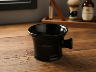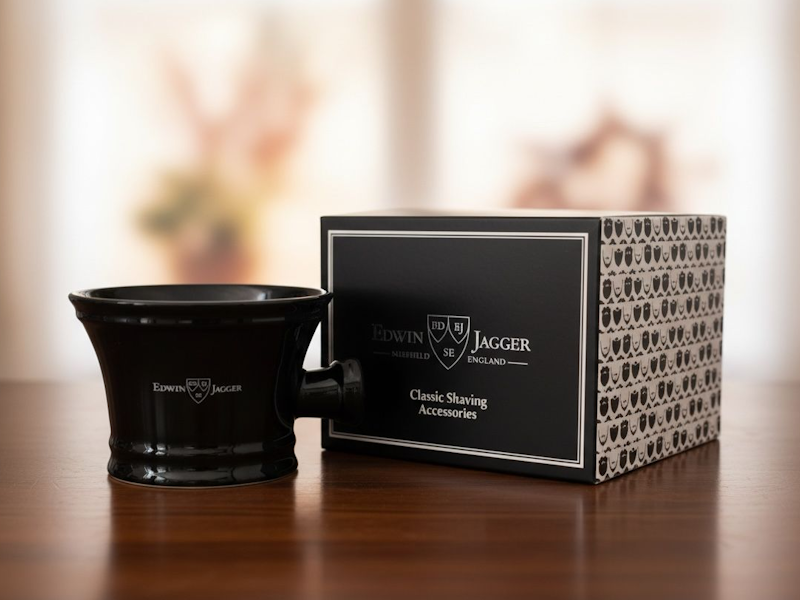Un compagno ideale per la rasatura a umido, la ciotola da barba Edwin Jagger con manico vanta un interno progettato con cura, facilitando la creazione ottimale di una schiuma ricca e ammortizzante. La ciotola in porcellana nera smaltata con manico crea la perfetta ciotola da barba portatile, tradizionale ed elegante Questa ciotola di lusso è consegnata in una confezione elegante, include un libretto di istruzioni e la cura, ed è un regalo ideale sia per uomini che per donne. Diametro apertura superiore - 100 mm Diametro interno della base : 65 mm Peso : 204 g (7,1 oz")