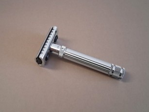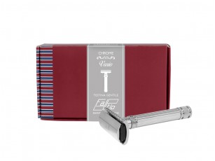 FATIP Rasoio in sicurezza Vario Chrome con testina gentile é possibile regolare la profondità di rasatura attraverso una ghiera girevole posizionata sul manico, alla base della testina che aumenta o diminuisce lo spazio tra lama e pettine della testina.
