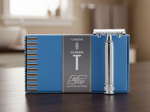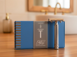 FATIP Classic Chrome con testina a pettine aperto, manico a colonna ionica e base zigrinata.