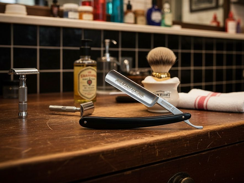 TIMOR Rasoio a Mano Libera con Manico in Plastica nera HR ed incisione oro. Lama in acciaio al carbonio 6/8".