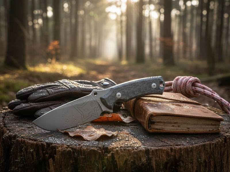 Coltello FOX Oxylos lama 13,5 cm acciaio Becut HRC 56-58 manico Micarda fodero in cuoio nero. Ideale per attività di outdoor e sopravvivenza